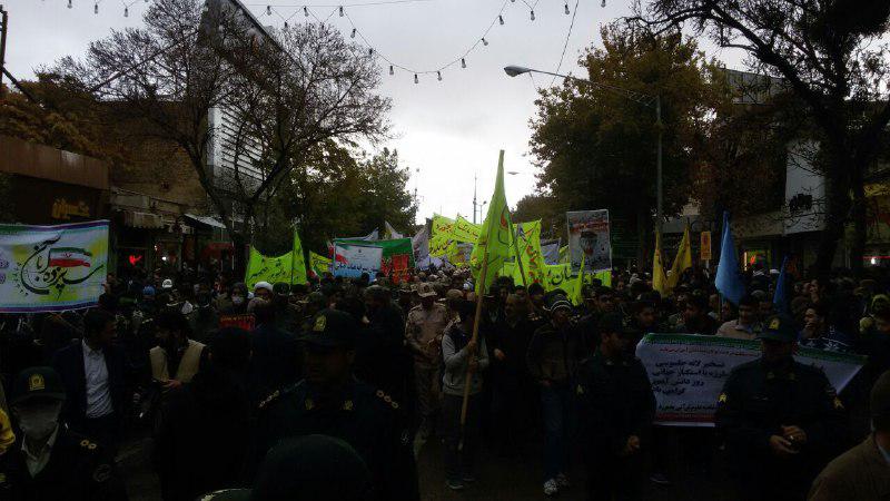 هوای سرد پاییزی با شعار های ضد استکباری ، مرگ بر آمریکا و مرگ بر اسراییل بر