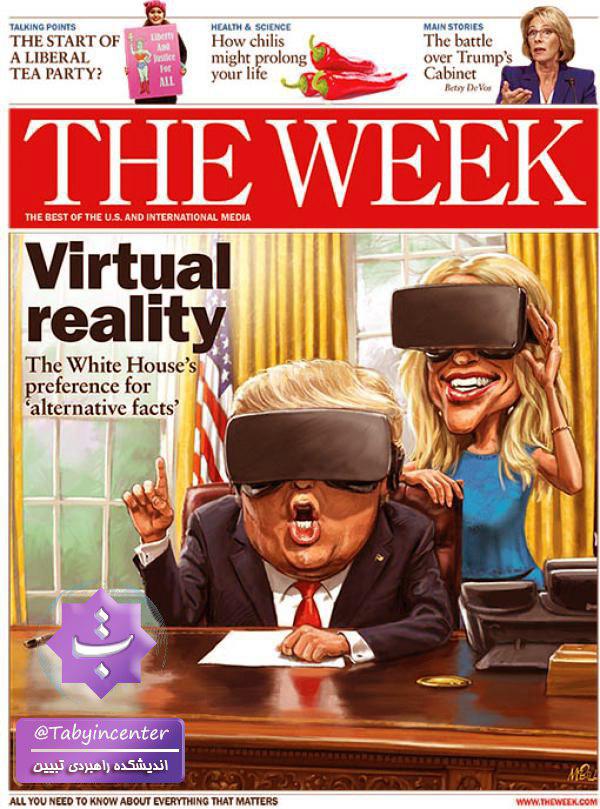 تصویری درباره حقیقت مجازی در کاخ سفید روی جلد هفته نامه THE WEEK منتشر شده است.
