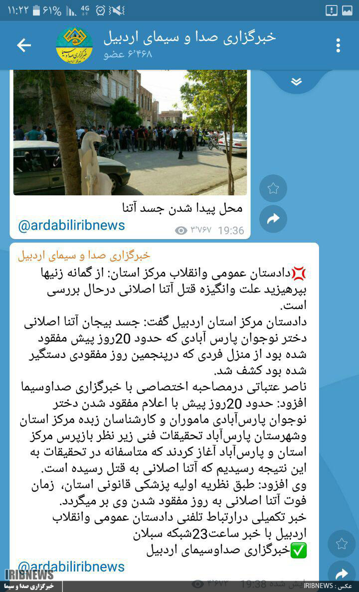 ماجرای قتل ناجوانمردانه آتنا اصلانی دختر بچه 7 ساله پارس آبادی نه تنها دل مردم مغان ، بلکه دل همه ملت ایران را داغدار و اندوهگین کرد .