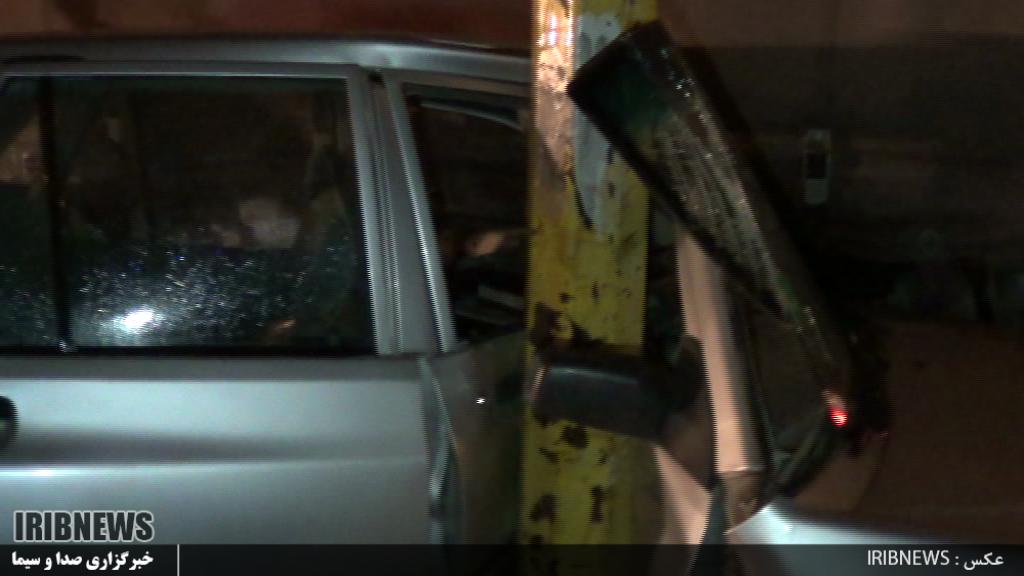 تریلی اتباع آذری بر اثر سرعت زیاد و لغزنده بودن زمین، پراید پارک شده در میدان نماز اصلاندوز را به سمت تیر فلزی چراغ راهنما کوبید و نصف کرد.
