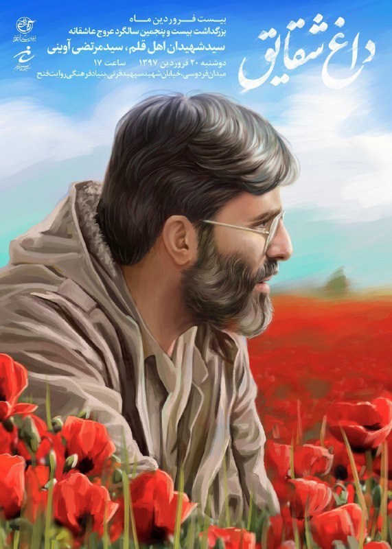 بزرگداشت بیست و پنجمین سالگرد عروج عاشقانه سید شهیدان اهل قلم، سید مرتضی آوینی، با نام «داغ شقایق» امروز با حضور سردار فضلی جانشین رئیس سازمان بسیج مستضعفین، حجت الاسلام والمسلمین نصراله پژمان فر عضو کمیسیون فرهنگی مجلس شورای اسلامی و جمعی از هنرمندان و مردم در فضای باز بنیاد فرهنگی روایت فتح برگزار شد.
