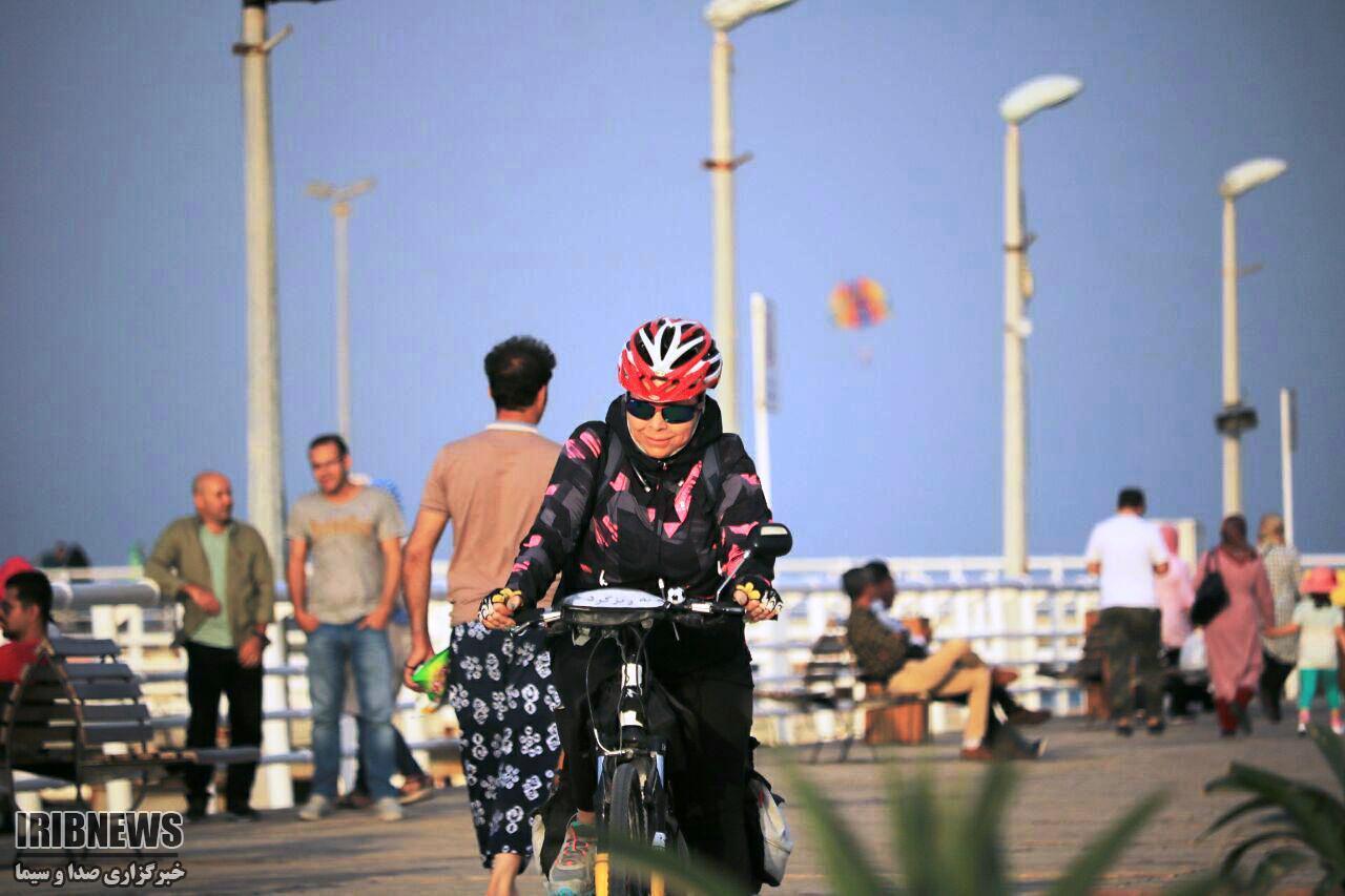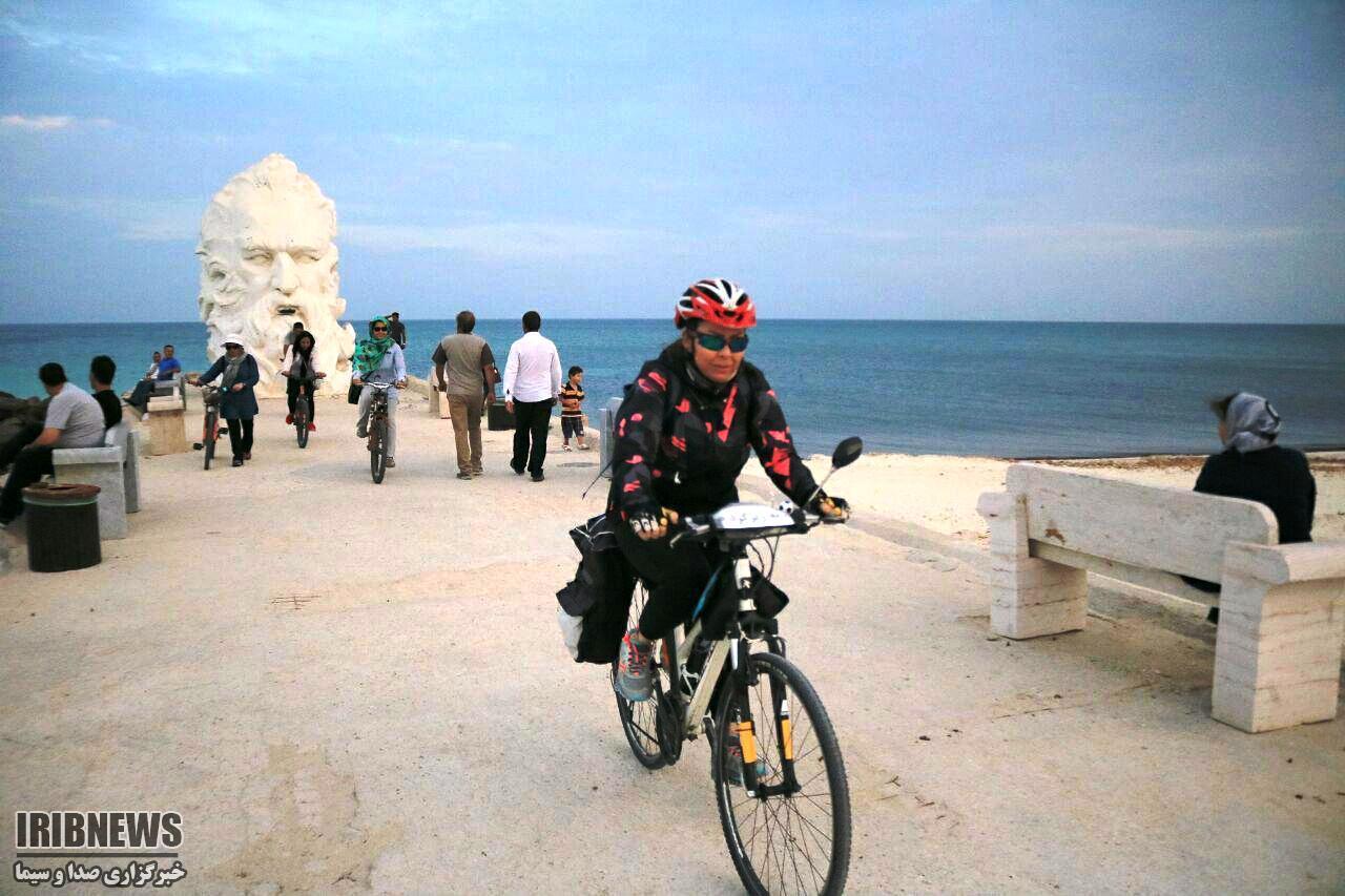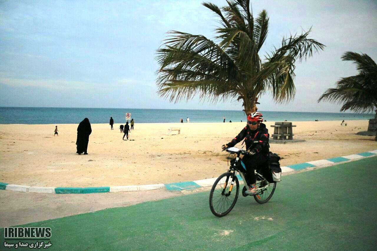 رویا لقمانیان بانوی دوچرخه سوار و دوستدار محیط زیست مسیر استان خوزستان تا جزیره کیش را رکاب زد.