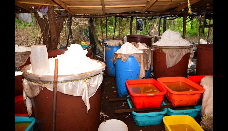 در بیانیه نیروی دریایی مکزیک آمده است:" ما موفق شدیم این آزمایشگاه مخفی تولید مواد مخدر و همچنین دو انبار زیرزمینی آن را با حدود پنجاه تن شیشه به شکل جامد و مایع کشف کنیم. "