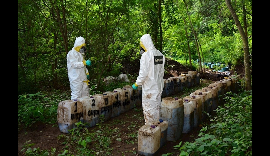 نیروی دریایی مکزیک با انتشار بیانیهای اعلام کرد نظامیان روز پنجشنبه در عملیاتی در روستای آلکویونکی که در منطقه کولیاکان مرکز استان سینالوآ در شرق مکزیک واقع شده است، به وجود این آزمایشگاه پی برد.