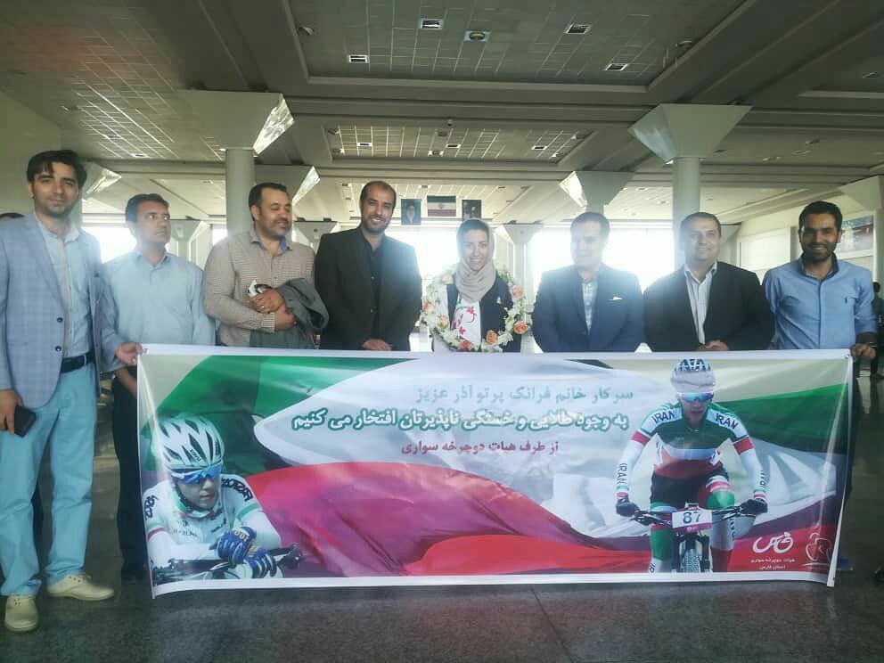 به گزارش خبرگزاری صدا و سیما ، مرکز فارس، فرانک پرتو آذر که به همراه تیم ملی دوچرخه سواری ایران به بازیهای آسیایی جاکارتا إعزام شده بود و عنوان چهارم را بدست آورده بود، امروز به شیراز بازگشت.