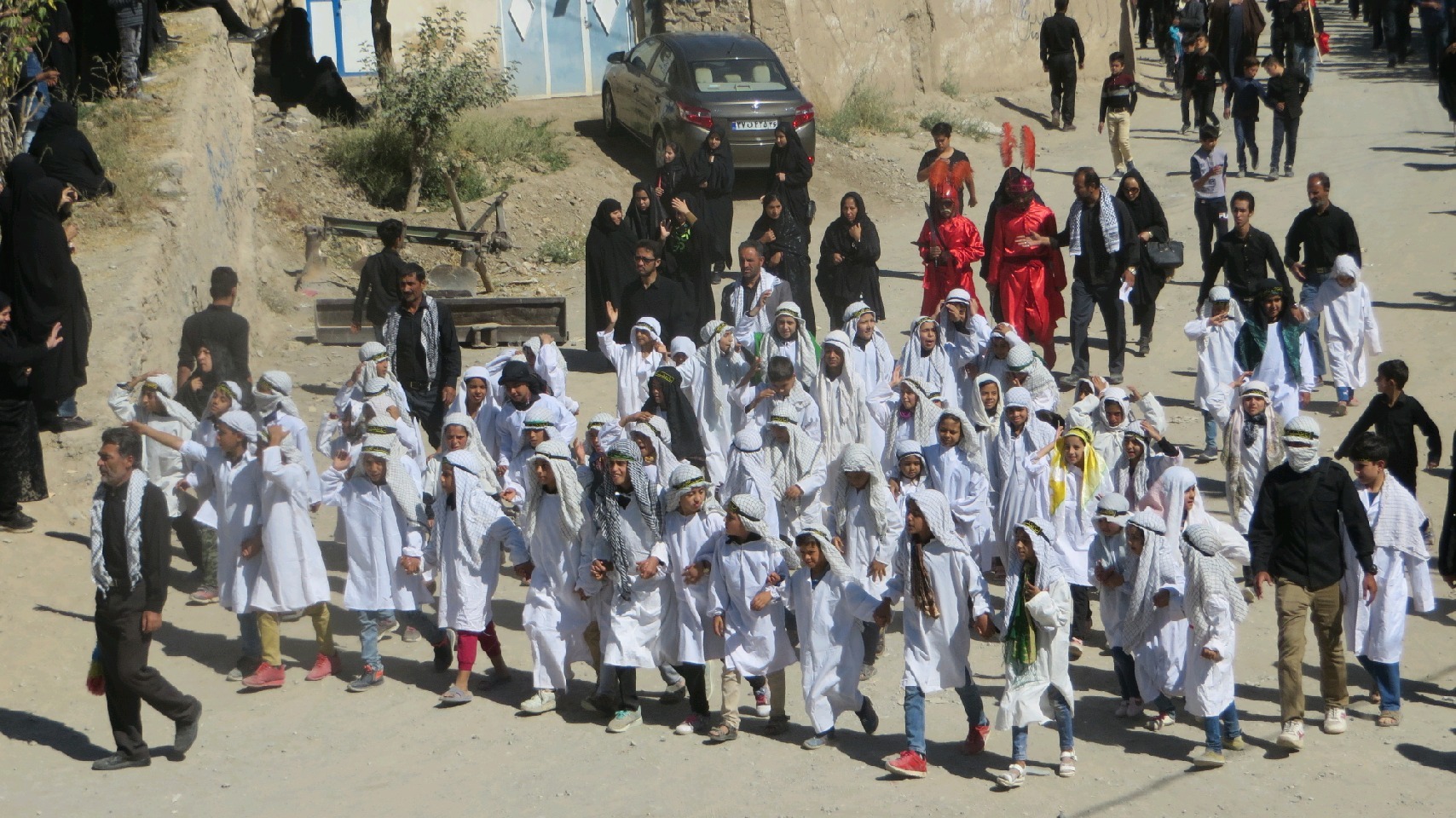 پیشاپیش هیئات های عزاداری روستا به اجرای برنامه پرداختند.