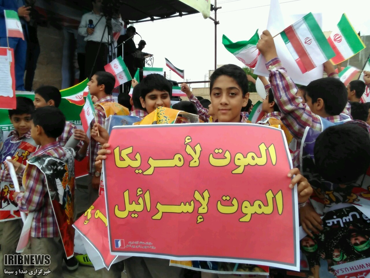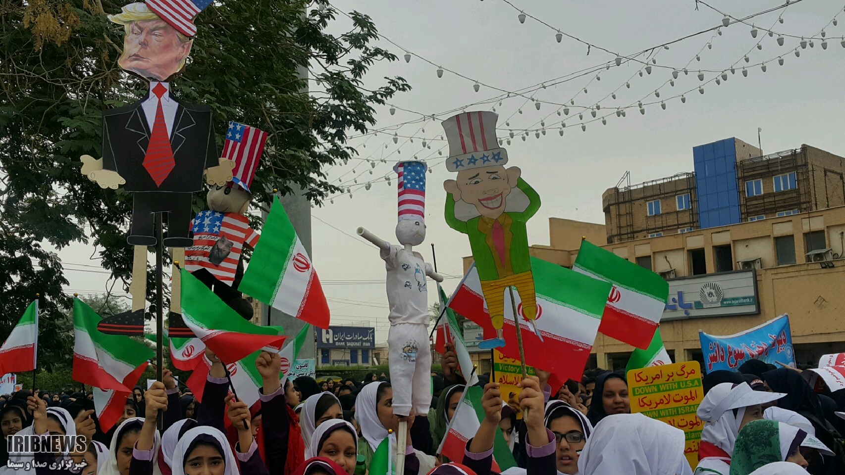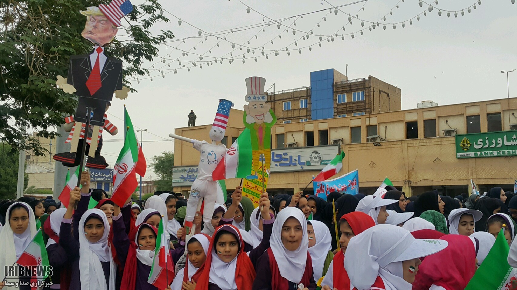دانش آموزان آبادانی و خرمشهری پیام مرگ بر آمریکا را به تمام جهان مخابره کردند.