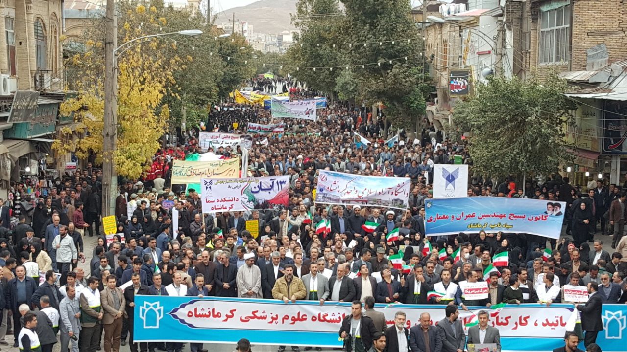مردم استان کرمانشاه در روز ملی مبارزه با استکبار جهانی (۱۳ آبان) به خیابانها آمدند و فریادهای مرگ بر آمريکا سر دادند .