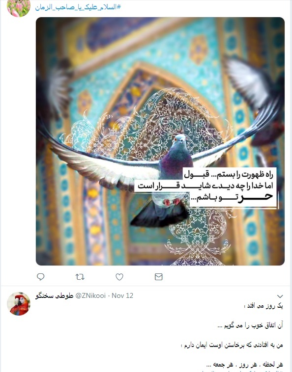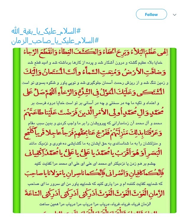به گزارش سرویس فضای مجازی خبرگزاری صدا و سیما؛ مطالبی را که کاربران فضای مجازی با هشتک #السلام_علیک_یا_بقیه_الله و #السلام_علیک_یا_صاحب_الزمان منتشر کرده اند با شما به اشتراک می‌گذاریم.