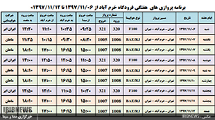 برنامه پروازهای فرودگاه خرم آباد تا 12 بهمن ماه