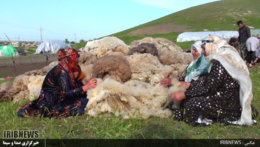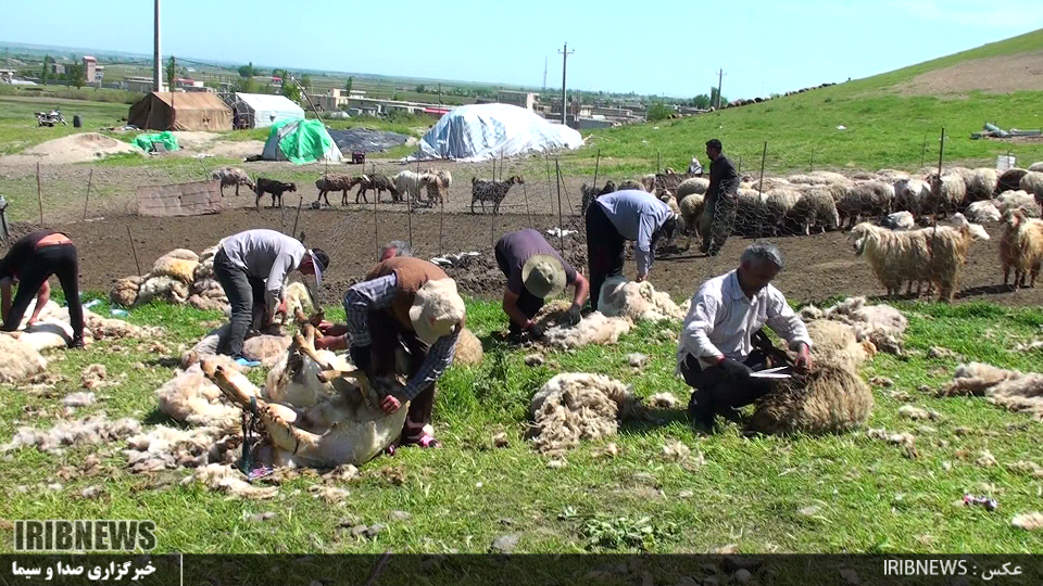 عشایر ایل شاهسون مغان در اصلاندوز قبل از کوچ به ییلاق اقدام به پشم چینی گوسفندان می کنند.