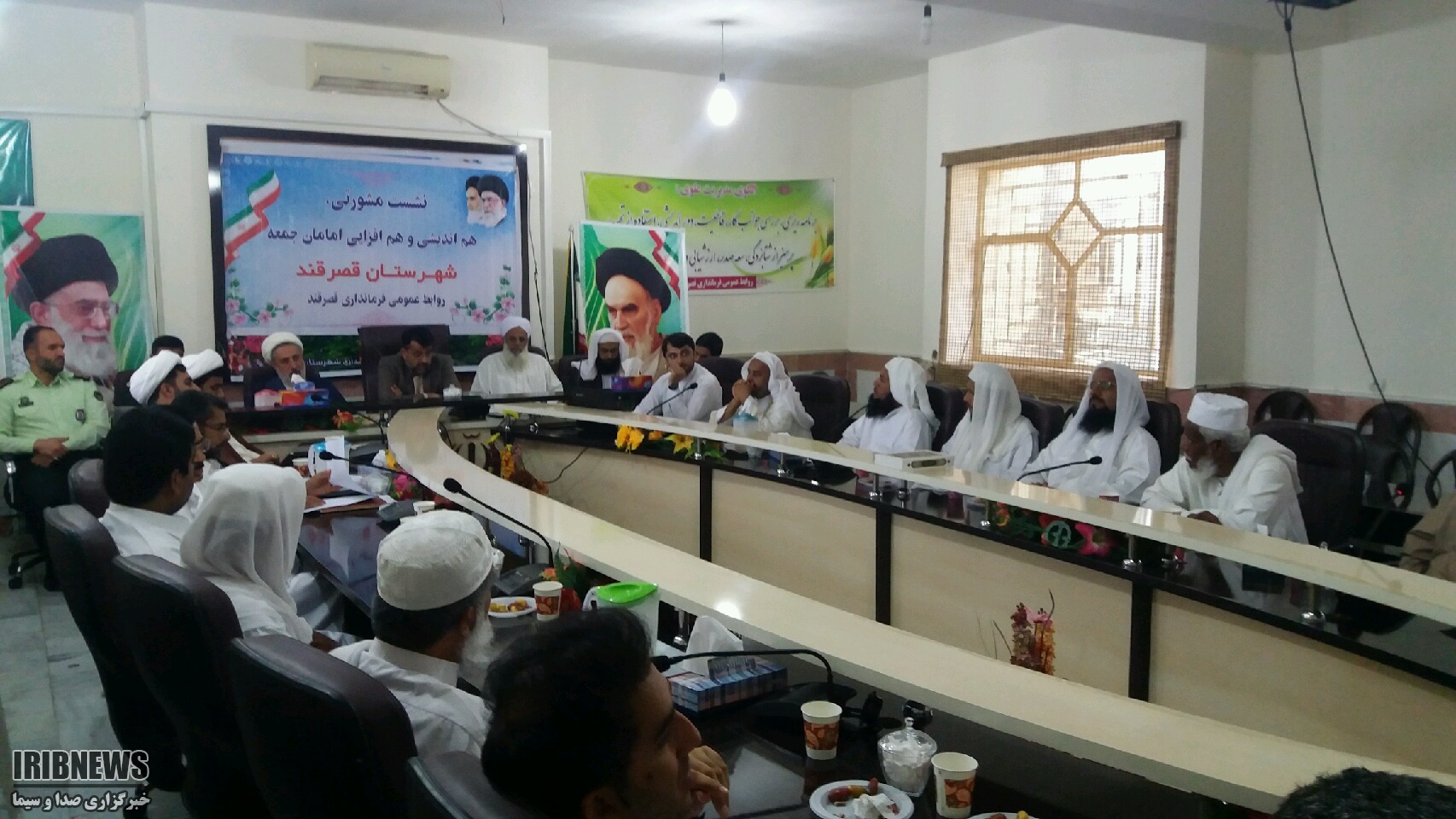 در این نشست تعدادی از امامان جمعه شهرستان قصرقند، بر علم آموزی، وحدت و همگرایی بین مذاهب اسلامی و آگاهی جوانان نسبت به مسئله اعتیاد تاکید کردند.