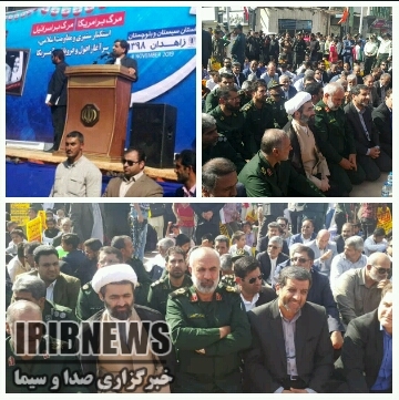 به گزارش خبرگزاری صداوسیما مرکز سیستان و بلوچستان، در راهپیمایی روز ملی مبارزه با استکبار، اقشارمختلف مردم شیعه و سنی سیستان و بلوچستان با حمل پارچه نوشته هایی در گرامیداشت این روز تاریخ ساز، شعار مرگ بر آمریکا، مرگ بر اسرائیل و مرگ بر آل سعود سردادند.