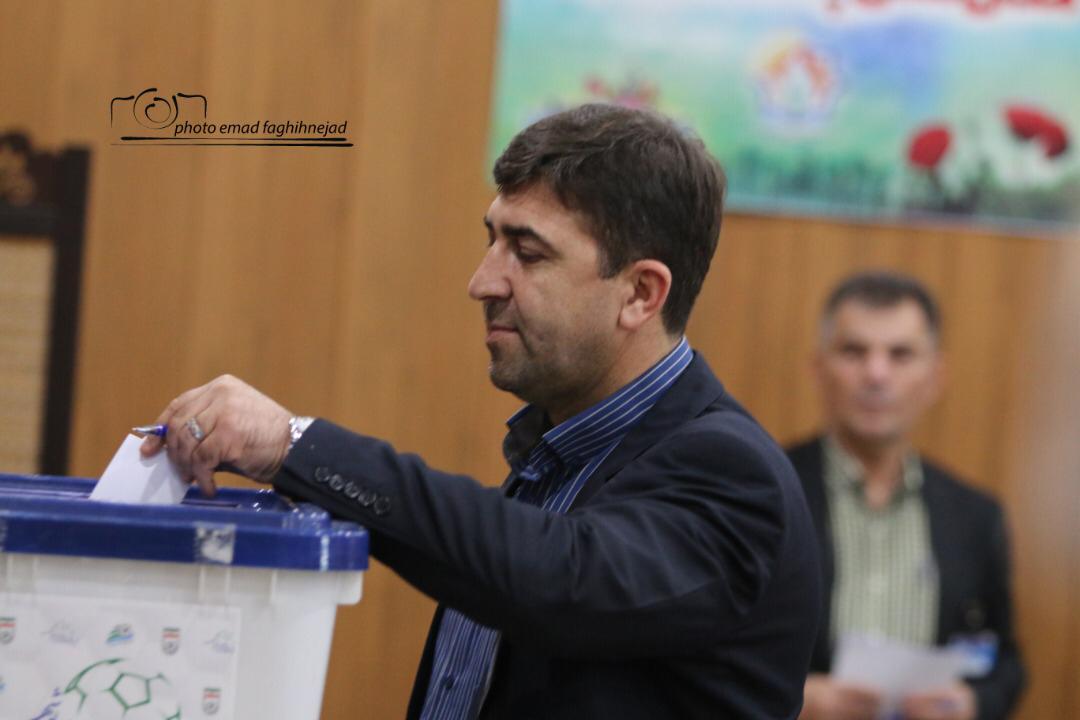 این افراد، سید علیرضا کازرونی، امیرحسین محتشم، سید یونس موسوی و فخرالسادات هاشمی بودند که سرانجام با رای گیری اعضا، محتشم با ۱۶ رای برای یک دوره ۴ ساله به‌عنوان رئیس هیئت فوتبال این استان برگزیده شد.