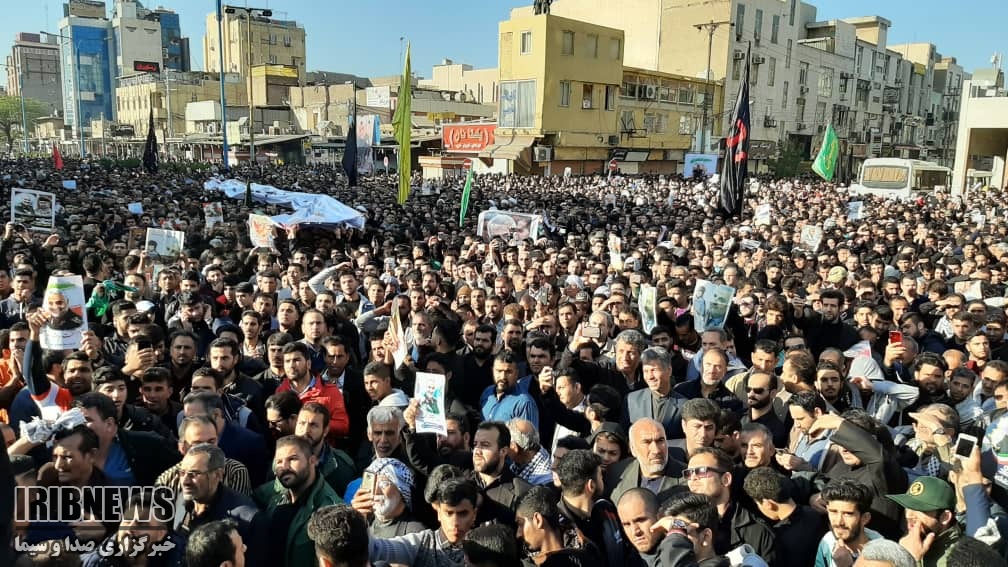 مردم اهواز و سپس مشهد مقدس، تهران و حالا قم، با استقبال بدرقه تا بهشت...پرشور و حماسی خود از شهدای غرورآفرین جبهه مقاومت، جهانیان را به تحیر و تحسین واداشتند. طولانی شدن مراسم تشییع شهدا در مشهد، منجر به لغو شدن برنامه وداع با شهدا شد که قرار بود شامگاه در تهران برگزار شود.