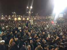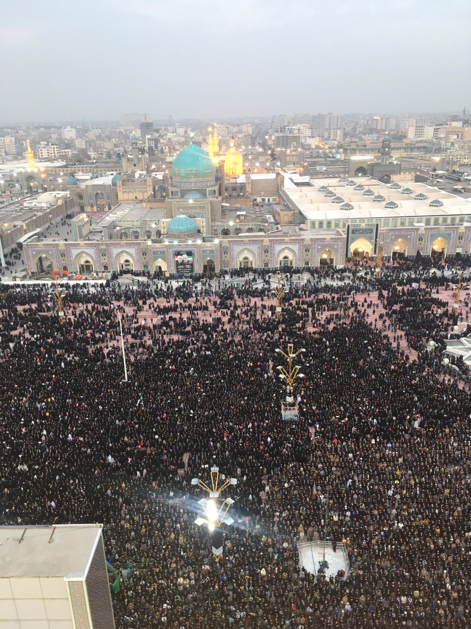با اینکه پرواز شهدا ساعت 14:30 به زمین نشسته بود، شوق مردم برای طلب شفا و شفاعت از شهدا، سبب شد حوالی ساعت 19 به بارگاه مطهر رضوی برسند. فلاشر روشن گوشی ها  در شبی که بارش برف به نم نم باران مبدّل شد، صحنه هایی زیبا ساخت.