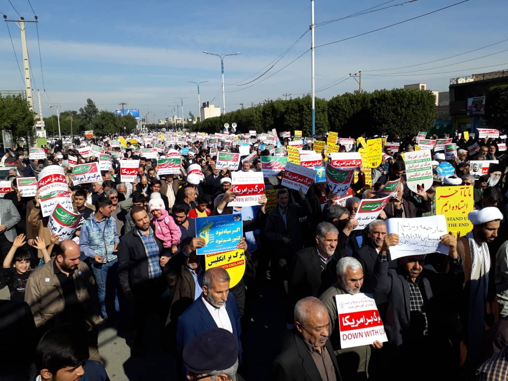 مردم انقلابی خوزستان در این راهپیمایی های گسترده با سر دادن شعارهای مرگ بر آمریکا و مرگ بر اسرائیل توطئه های دشمنان ایران و انقلاب اسلامی را محکوم کردند.