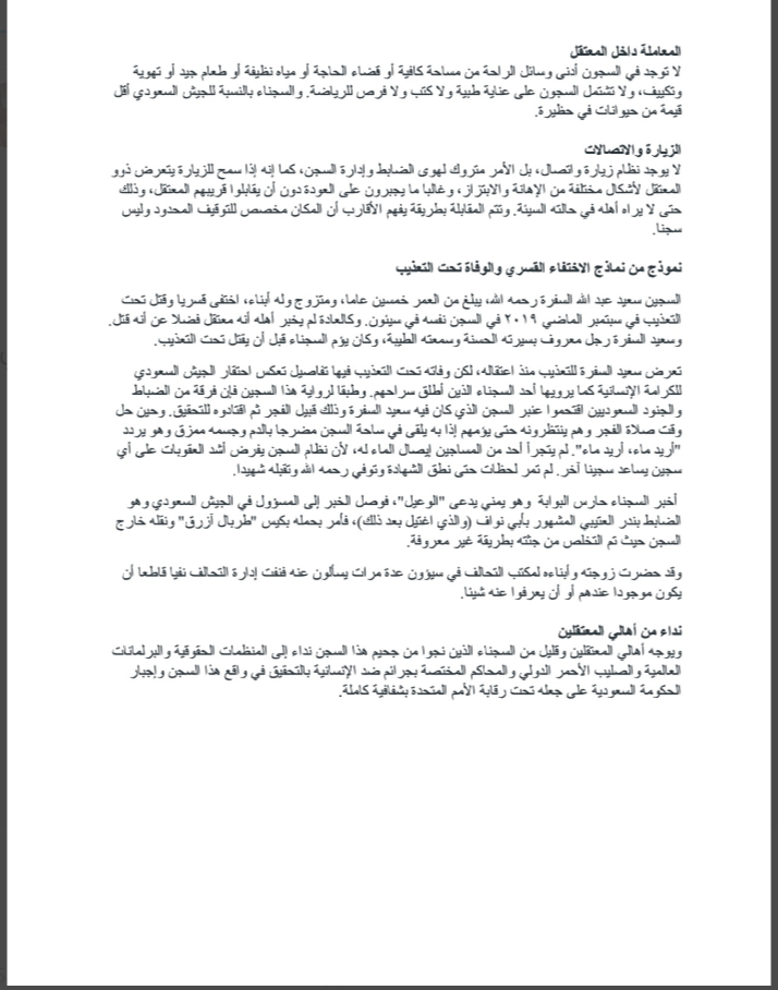 مجتهد، فعال توییتری مشهور که اطلاعات زیادی از خاندان آل سعود دارد در توییتی نوشت: گزارشی درباره وضع زندانیان سابق زندان تحت اداره نیرو‌های عربستان در یمن به دستم رسیده است.