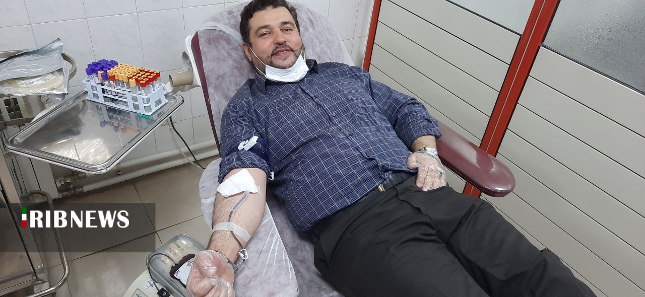 اهدای خون استاندار و جمعی از کارکنان صدا وسیمای مرکز اردبیل بمناسبت هفته انتفال خون