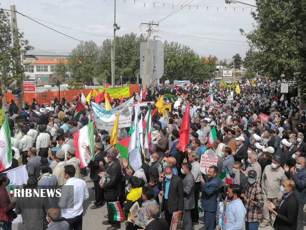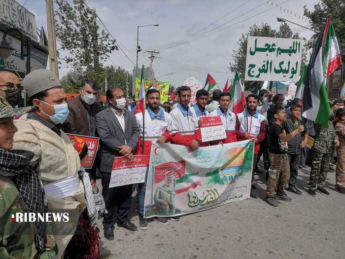 شرکت کنندگان در این راهپیمایی با سردادن شعارهایی همراه با مشت های گره کرده نفرت و انزجار شدید قلبی خود را از رژیم جعلی، غاصب، نامشروع و کودک کش صهیونیستی و جنایت های ضدبشری و غیرانسانی آن علیه ملت مظلوم فلسطین نشان می دهند.
