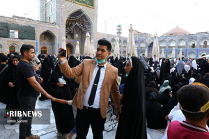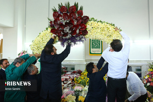 اهتزاز پرچم حرم حضرت علی ابن موسی الرضا (ع) در منطقه ۱۳