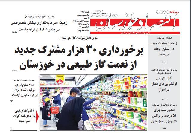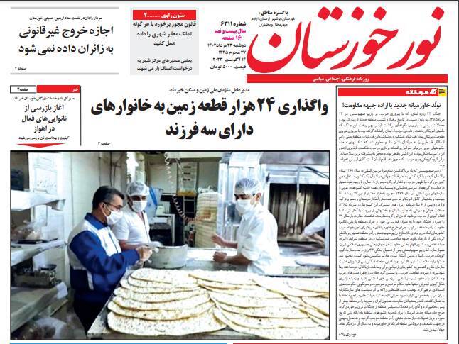 از دیگر عناوین امروز مطبوعات استان: مدیر عامل سازمان ملی زمین و مسکن خبر داد: واگذاری ۲۴ هزار قطعه زمین به خانوارهای دارای سه فرزند -مدیر کل بنادر و دریانوردی خوزستان: زمینه سرمایه گذاری بخش خصوصی در بندر شادگان فراهم است و نمیگذاریم امتیاز نفت اهواز را در لیگ یک به تاراج ببرند، میباشد.