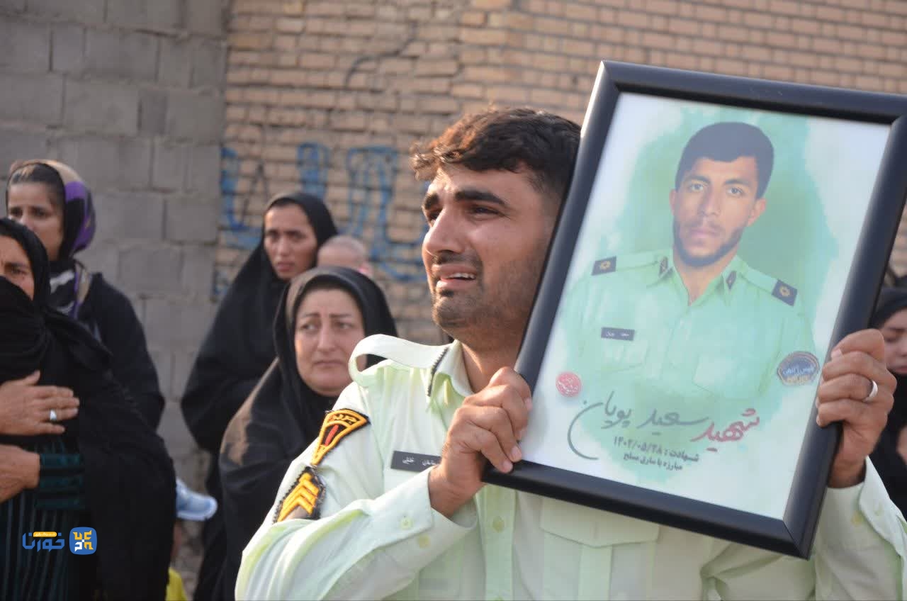 پیکر پاک شهید سعید پویان از شهدای مدافع امنیت استان خوزستان عصر روز دوشنبه ۳۰ مردادماه سال ۱۴۰۲ همزمان با شب شهادت دختر دردانه امام حسین (ع) حضرت رقیه خاتون (س) در شهر باغملک تشییع شد.
