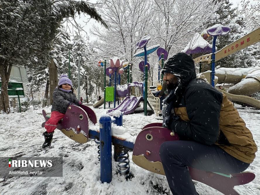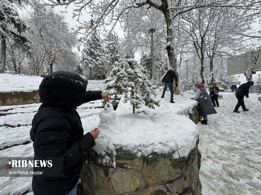 بارش برف زمستانی که از عصر پنج شنبه در شهر تهران آغاز شده بود موجب خوشحالی مردم و زیبا شدن خیابانهای شهر شد.