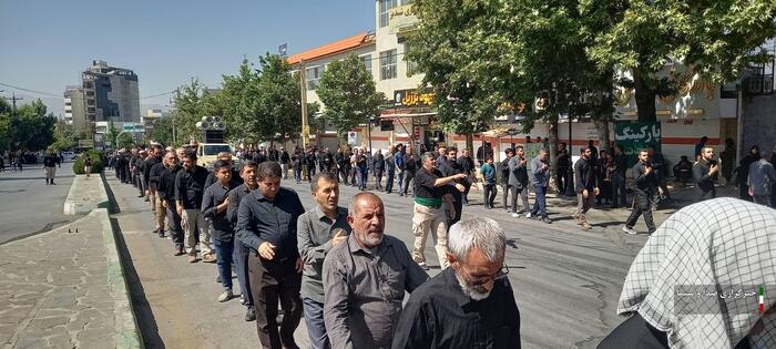 دستههای عزاداری با شیوههای مختلف به سوگواری میپردازند. گروهی از جوانان با زنجیرزنی، ضرباهنگی منظم ایجاد کردهاند که با نوای نوحهها هماهنگ است. عدهای دیگر با سینهزنی و تکرار ذکر "یا حسین" عزاداری میکنند. گروهی نیز با حمل علمهای بزرگ و کتلهای مزین به نام امام حسین (ع) و دیگر شهدای کربلا، ارادت خود را به ساحت مقدس اهل بیت (ع) نشان میدهند.