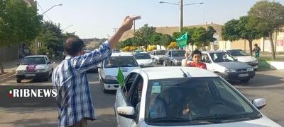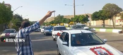 در این رژه خودرویی مردم ولایت مدار تکاب با هدف گرامیداشت یاد و خاطره فرماندهان و دانشمندان شهیدتهاجم وحشیانه رژیم غاصب صهیونیستی و نصب تمثال شهدا بر روی خودروها، خوشحالی خود را از عملیات تهاجمی نیورهای مسلح و پاسخ قاطع به دشمن صهیونیستی ابراز داشتند.