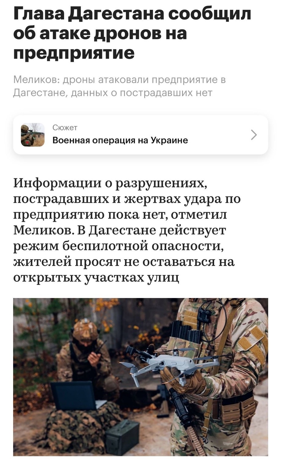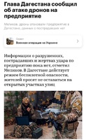 ⁃ رئیس جمهوری داغستان از حمله پهپادی به یک مجموعه صنعتی در این جمهوری خبر داد.