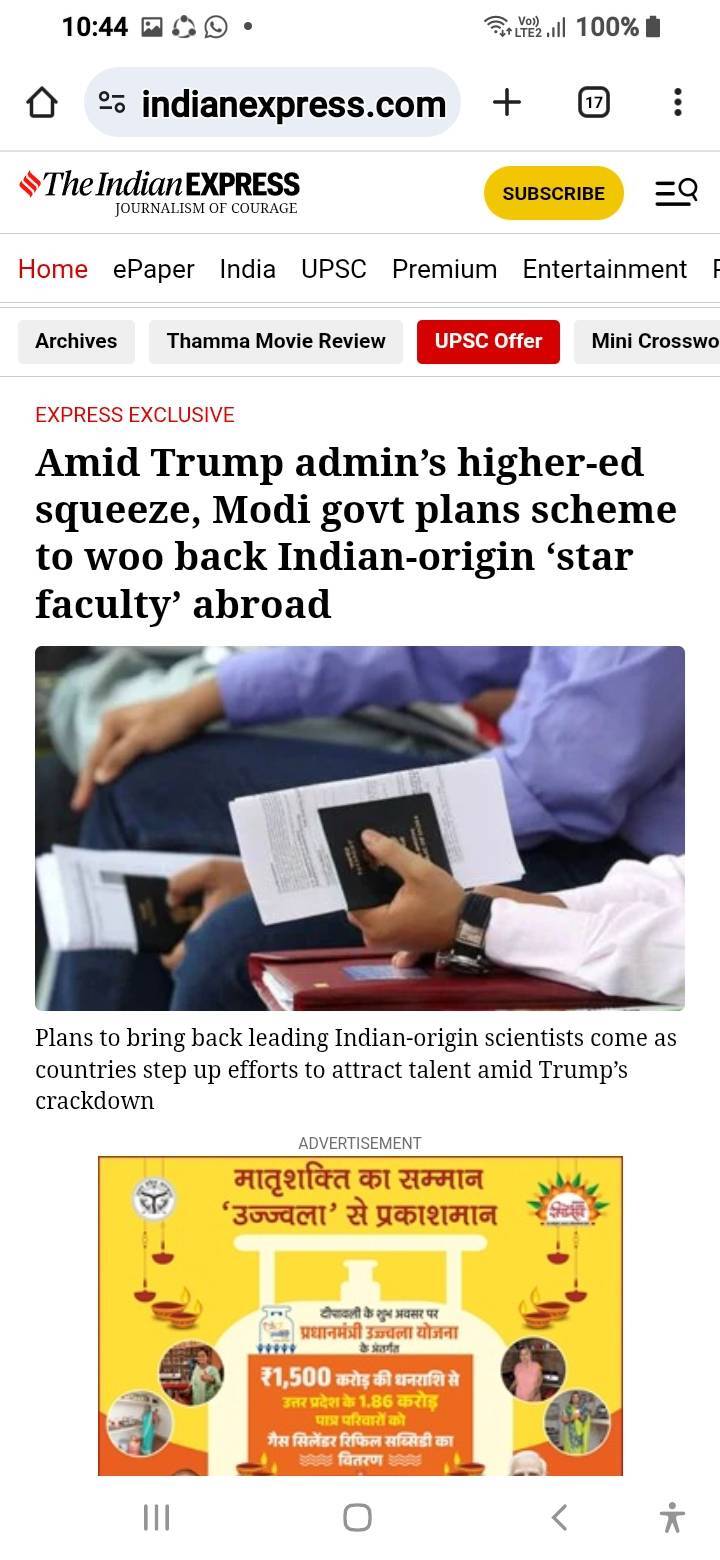 -در بحبوحه فشار دولت ترامپ بر دانشگاه‌های سطح بالا، دولت مودی طرحی برای جذب «اساتید برجسته» هندی‌الاصل در خارج از کشور دارد. -برنامه‌هایی برای بازگرداندن دانشمندان برجسته هندی تبار در حالی مطرح می‌شود که کشور‌ها در بحبوحه سرکوب‌های ترامپ، تلاش‌های خود را برای جذب استعداد‌ها افزایش می‌دهند.