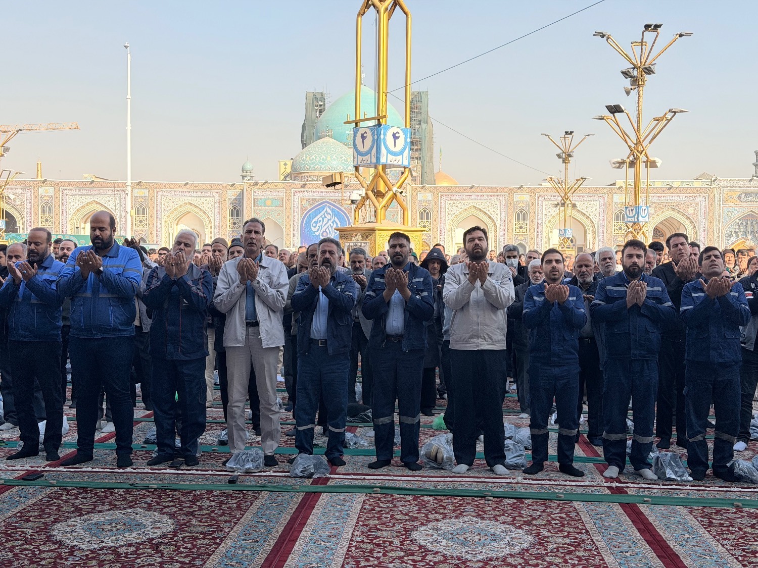 مراسم نماز طلب باران ظهر امروز با حضور گسترده زائران و مجاوران در صحن پیامبر اعظم حرم مطهر امام رضا (ع) برگزار شد.